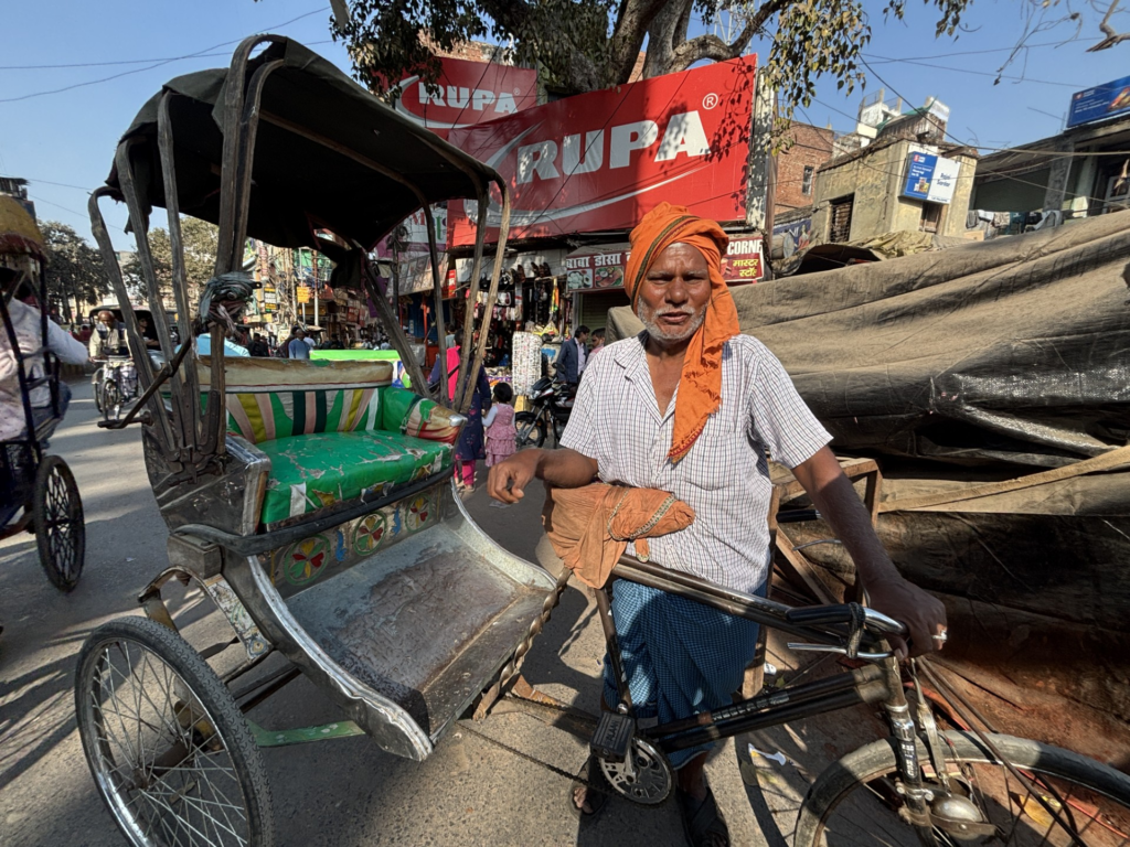 帰り道、オートリキシャからこちらに乗り換えてと言われて乗ったサイクルリキシャの運転手。仕事人のかっこ良さがありました。